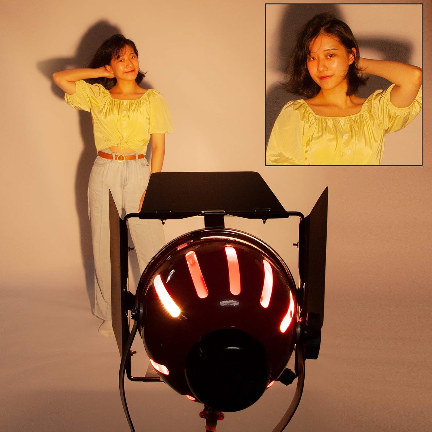 800 Watt Red Light provides consistent, adjustable lighting for video shoots, portraits and product photography.